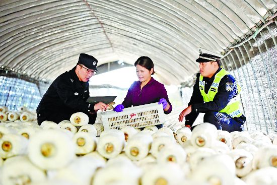 近日,当涂县公安局石桥派出所民警、辅警走进辖区菌菇种植基地,与种植农户面对面交流,了解消费需求及治安状况。
