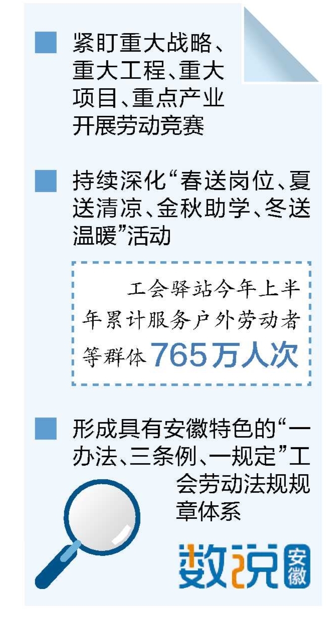Î§ÈÆÖÐÐÄ´ó¾Ö£¬×éÖ¯¶¯Ô±¹ã´óÖ°¹¤½¨¹¦Á¢Òµ¡¢´´Ð´´Ô졣ȫʡ¹¤»á½ô¶¢ÑÏÖØÕ½ÂÔ¡¢ÑÏÖØ¹¤³Ì¡¢ÑÏÖØÏîÄ¿¡¢Öصã²úÒµ£¬¹ã·ºÉ¿ªÕ¹¡°µ±ºÃÖ÷ÈËÎÌ ½¨¹¦ÐÂʱ´ú¡±¡°½¨¹¦Ê®ËÄÎå ·Ü½øÐÂÕ÷³Ì¡±µÈÖ÷ÌâÀͶ¯¾ºÈü£¬×éÖ¯ÆóÊÂÒµµ¥Î»Ö°¹¤»ý¼«²ÎÓë¼¼Êõ±ÈÎä¡¢¸ÚλÁ·±øºÍ¡°ÎåС¡±µÈȺÖÚÐÔ¼¼Êõ´´Ð»¡£Éʵʩ°²»Õ¹¤½³¡°Ê®°ÙǧÍò¡±ÅàÓý¾Ù¶¯¡¢½¨É蹤½³Ñ§Ôº¡¢¿ªÉè¡°¹¤½³Ñ§ÀúÌáÉý°à¡±ºÍ¡°²úÒµ¹¤ÈËѧÀúÌáÉý°à¡±µÈ£¬¸³ÄܲúÒµ¹¤È˳ɳ¤£¬½ØÖÁĿǰ£¬°²»ÕÒÑÓÐ10Ãû´ó¹ú¹¤½³ºÍ300ÃûÊ¡¼¶¹¤½³¡£³ÖÐø¿ªÕ¹¡°ÀÍÄ£¹¤½³ÖúÆóÐС±×¨Ïî¾Ù¶¯£¬×éÖ¯ÀÍÄ£¹¤½³ÐÖúÖÐСÆóÒµ´¦Àí¼¼ÊõÄÑÌ⣬ÌáÉýÖ°¹¤¼¼Ä̶ܳȡ£Í¬Ê±£¬×éÖ¯ÀÍÄ£¹¤½³£¨¹¤»á¸É²¿£©Ðû½²ÍÅÉÆóÒµ¡¢°à×é¡¢¹¤µØ¡¢Ð£Ô°¡¢ÉçÇøºÍÍøÂ磬³£Ì¬»¯¿ªÕ¹¡°Áù½ø¡±Ðû½²»î¶¯¡£